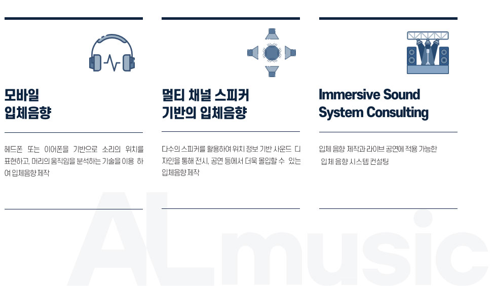 입체음향 콘텐츠 제작 및 제공과 사운드 시스템 컨설팅을 제공합니다.